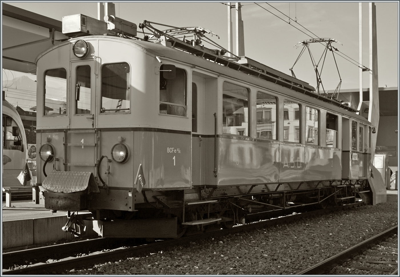Es zeigte sich, dass es am Nachmittag gar nicht so einfach ist, eine lichtmässige gute Stelle zum fotografieren eines nach Les Diablerets fahrenden Zuges gibt. Und so wählte ich die erst vor gut eineinhalb Stunden vorher entdeckte Stelle für den Association ASD 1914 BCFe 4/4 N° 1 Extrazug, der dann keine Minute zu spät kam, denn hinter meinem Rücken rückte der Schatten der Berge drohen schnell heran.