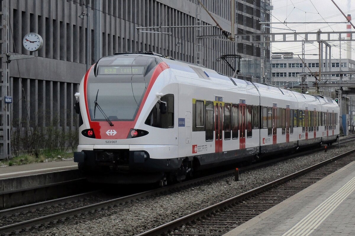 Da setzt man sich gemütlich zur Mittagspause hin und dann fährt vor dem Fenster eine Re 4/4 II vorbei die soweit ersichtlich eine mit unbekannte Fracht befördert. Als ich dann abrupt mein Mittagsmal unterbrach, und auf den Bahnsteig eilte, nicht ohne vorher meine kleine Knipse geschnappt zu haben, bot sich mit das hier gezeigte Bild: In Lausanne auf Gleis 1 wartet der SBB RABe 523 015 auf die Abfahrt nach Murten und auf Gleis 2 steht der Stadler Tm 232 050-5 (UIC 98 85 5 232 050-5 CH-STAG) mit drei Uaikk -> CH-STAG.