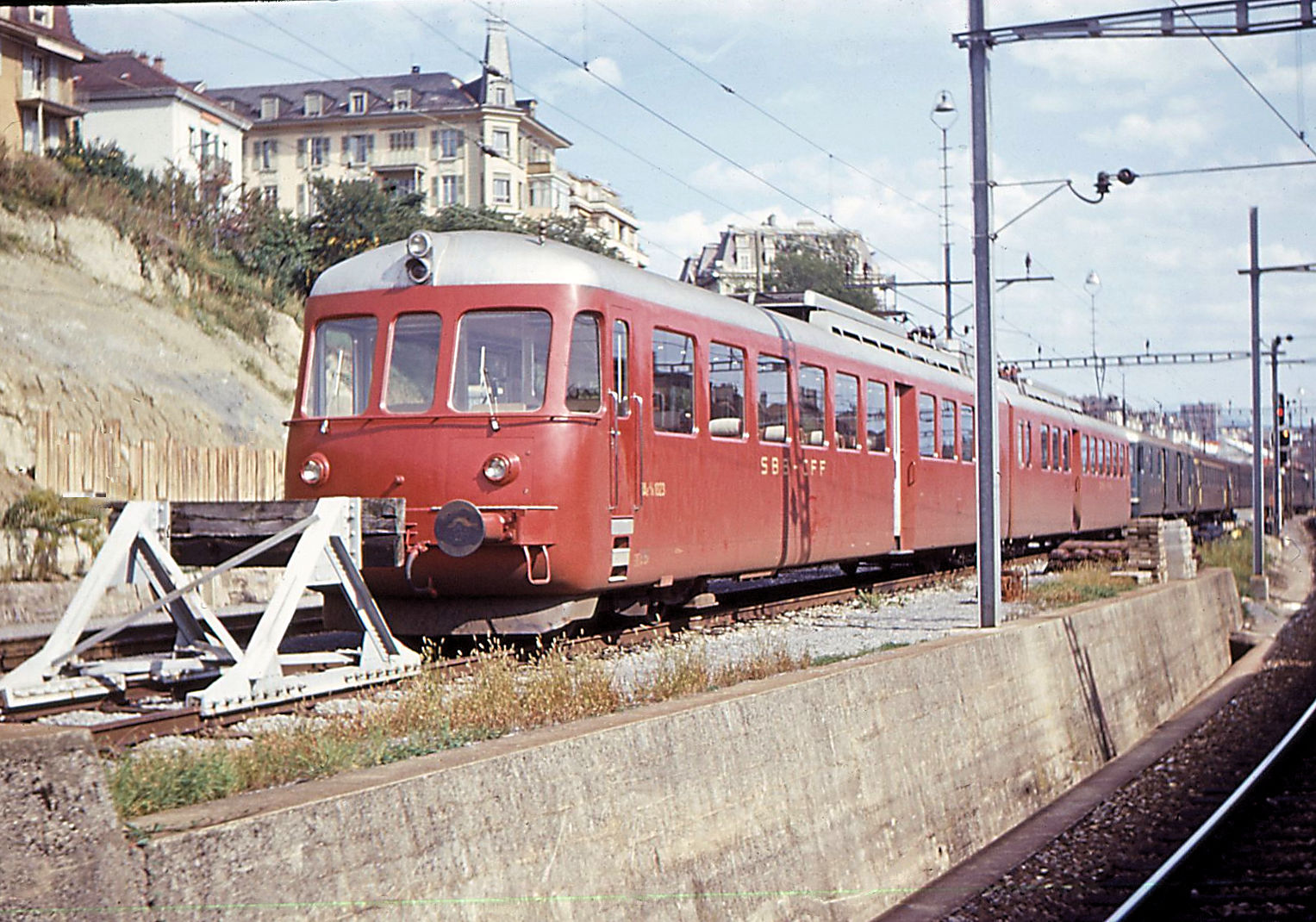 SBB: SBB RAe 4/8 1023 beim EBT Bahnhof Kirchberg Alchenflüh unterwegs im Jahre 1981.
