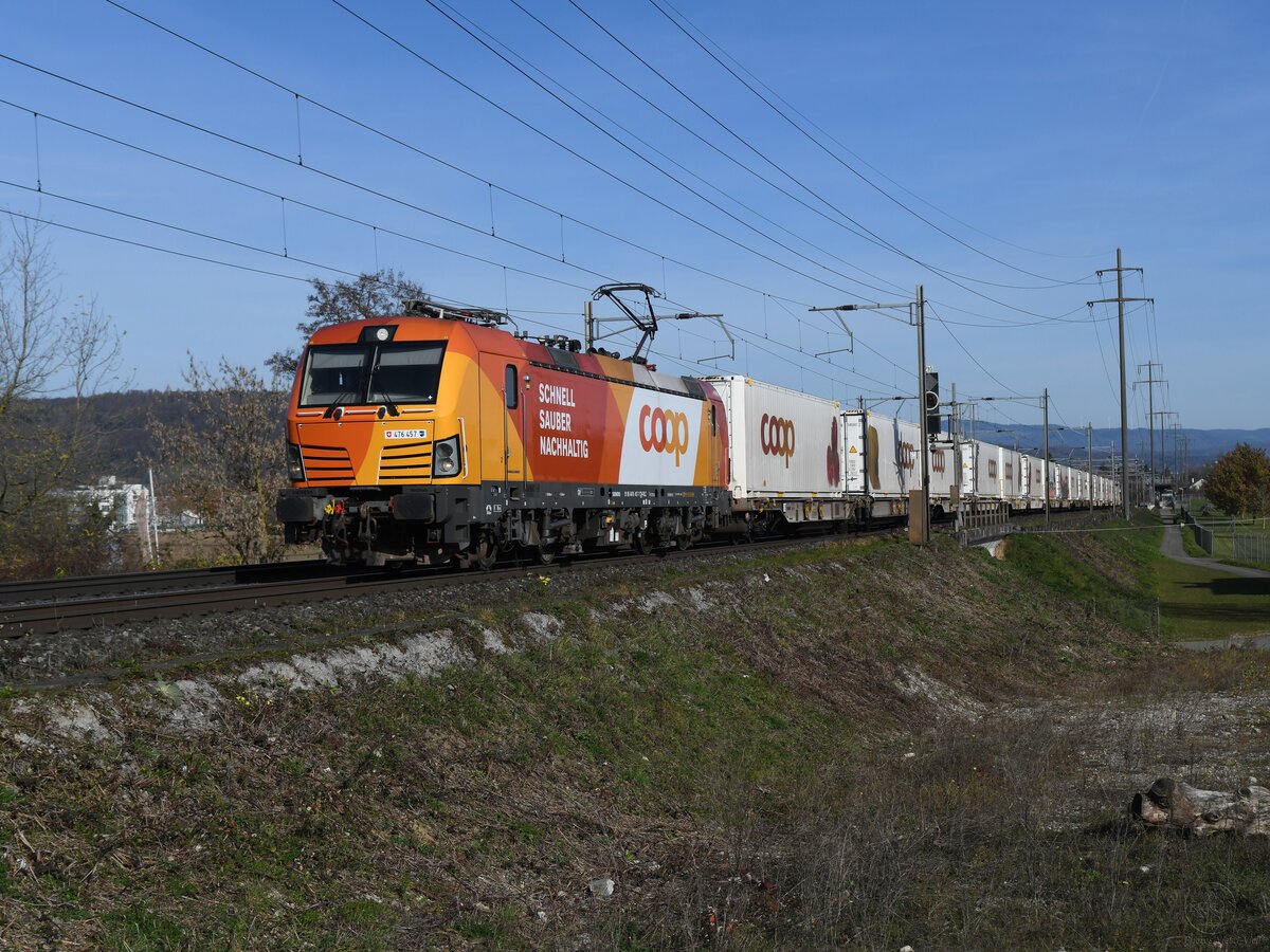 Die RailCare Rem 476 453 verlässt mit einem Lebensmittel Container Zug Vuffelens la Ville.