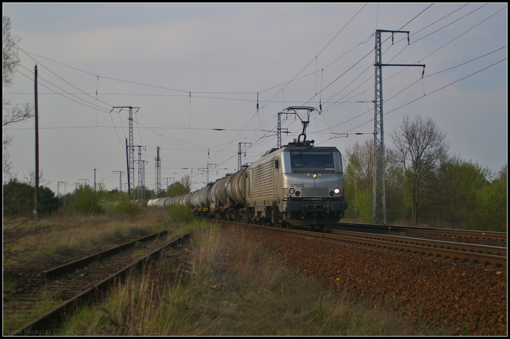 mcm logistics 37005 mit Zacs in Berlin Wuhlheide, 24.04.2015. Der Tf hatte seine seine Freude und grüßte mit Lichthupe. Gruß zurück! (NVR-Nummer 91 87 0037 005-2 F-AKIEM)