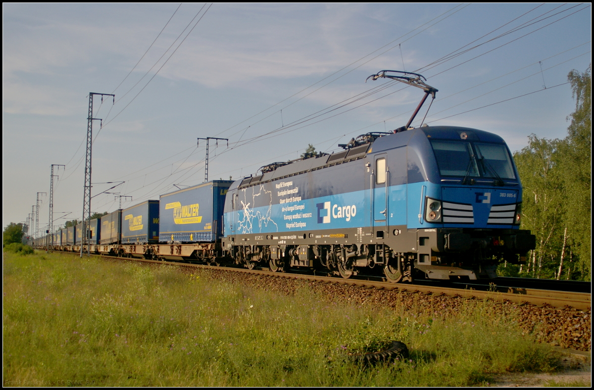 CD Cargo 383 005-6 fuhr mit dem 'LKW-Walter'-KLV (KT 41375 Rostock-Seehafen nach Brno) am 09.07.2017 durch die Berliner Wuhlheide