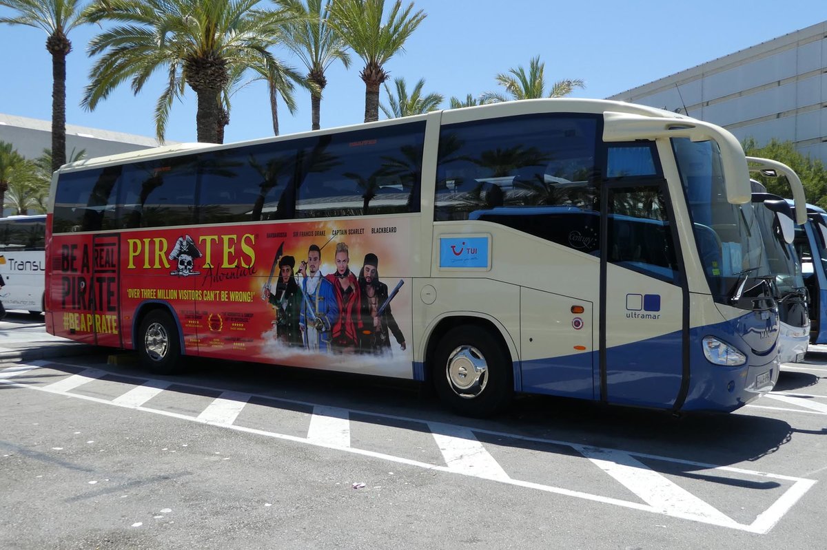 MAN Irizar als Werbeträger für  PIRATES  wartet am Airport Palma /Mallorca im Juni 2016