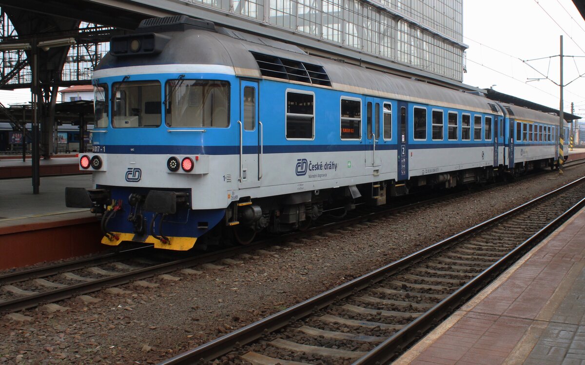 Diesel Triebzug 854 213-6 (TOM) wartet im Bahnhof von České Budějovice (Budweis) auf Fahrgäste um diese als Sonderzug in die Abstellung zu überführen wo noch weiteres Bahnmaterial zu besichtigen war. 22.09.2018