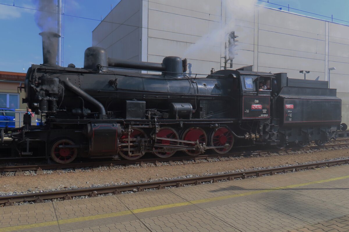 Am 11 Mai 2024 ist 434 2186 gerade mit ein Sonderzug aus Krupý ins Eisenbahnmuseum von Luzna u Rakovnika angekommen.