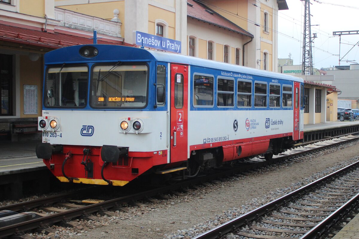 Farbenfroher 810 263 steht am 26 September 2025 in Benesov u Prahy. Auch in Tschechische Republik bekommen die Fahrzeuge mehr und merh die provinziale Farben.