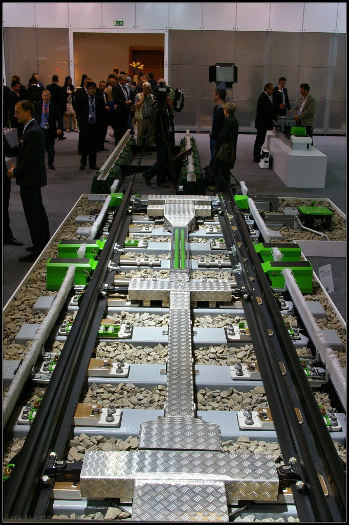 Auch Vossloh Rail Services war während der InnoTrans 2014 in Berlin vertreten. Das sich Vossloh nicht nur als Produzent von Lokomotiven, sondern auch als Dienstleister versteht, war mit der neuen Schienenfräse "Hornet" oder dem HSG-city zu sehen.