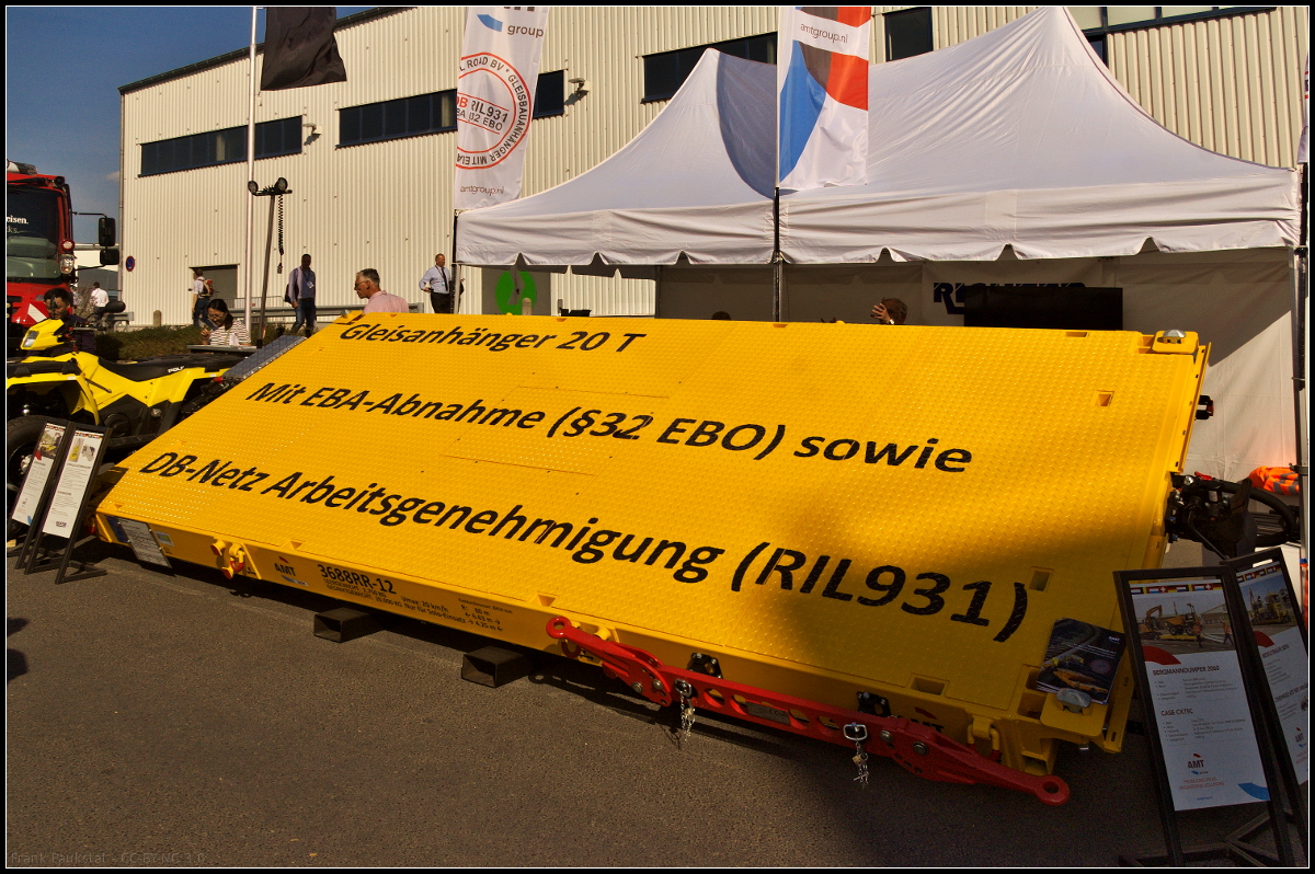 Mit Zubehör stand der Liebherr A 922 Rail Litronic Zweiwegebagger auf der InnoTrans 2018. Als Zweiwegebagger kann er sowohl auf der Straße als auch auf der Schiene eingesetzt werden. Das Einsatzgewicht variiert zwischen 19.900 und 22.800 kg, die Motorleistung liegt bei 110 kW, Vmax bei 20 km/h (D-LHB 99 80 9903 759-5).