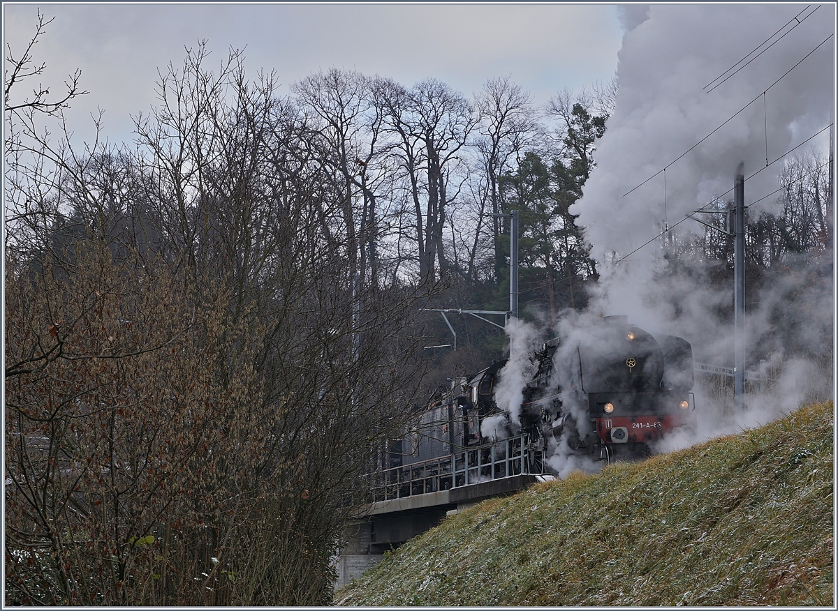 Die herrliche SNCF 241-A-65 auf der Aarebrücke kurz vor Koblenz.